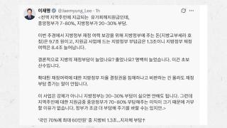 이 대통령 "유가지원금, 지방정부 부담 증가 아냐"이재명 대통령이 이번 추경에 편성된 고유가피해지원금이 지방정부의 재정부담을 늘린다는 주장을 직접 반박했습니다.이 대통령은 오늘(5일) 자신의 SNS에 지방정부 부담이 늘었다는 내용의 기사를 공유하며 "이번 지방정부에 주는 돈은 9